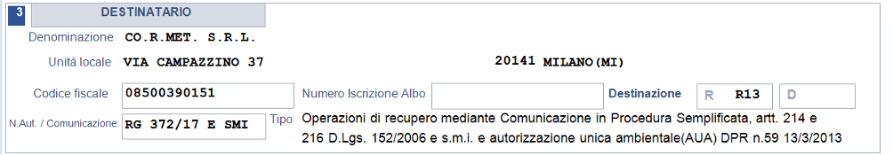 Di seguito, vi riportiamo le info da inserire all’interno del nuovo formulario, sezione “destinatario”, alla luce dell’inserimento dei due nuovi campi: